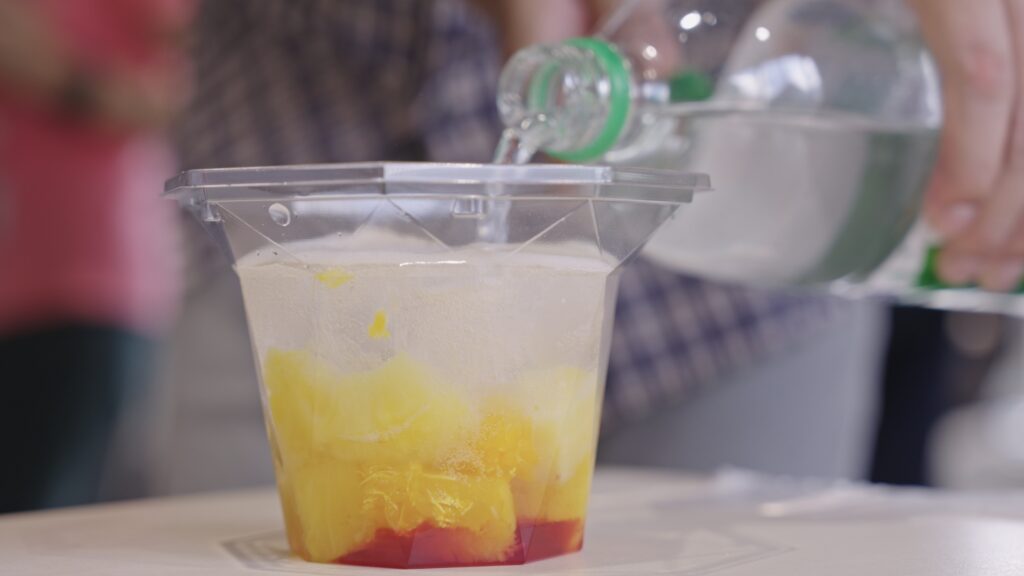 最後には、「三ツ矢サイダー」を使ったフルーツポンチづくりも楽しみました。