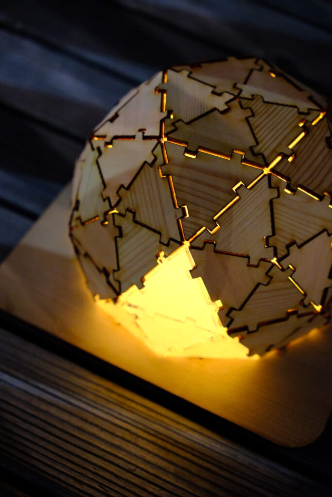 黒部ダム周辺で回収した流木に新たな命を吹き込む『クロベのキセキ』シリーズの木材を使い、THE NORTH FACE ジオドームをモチーフにしたジオデシック構造のランプづくりをお楽しみいただきました。