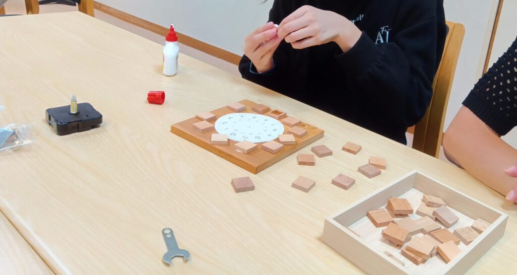 今回のワークショップでは、専用の工作キットを使用し、組み立てや仕上げの工程を楽しみながらウッドクロックを制作していただきました。