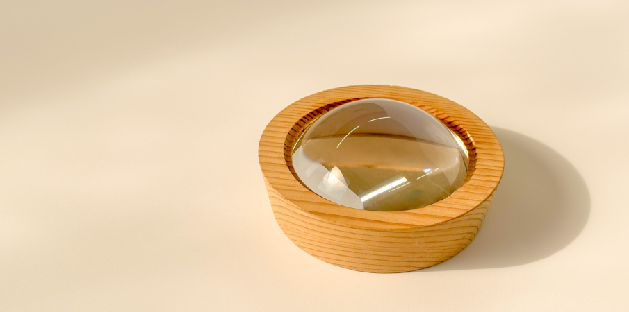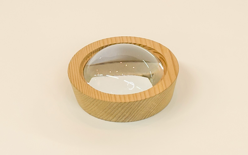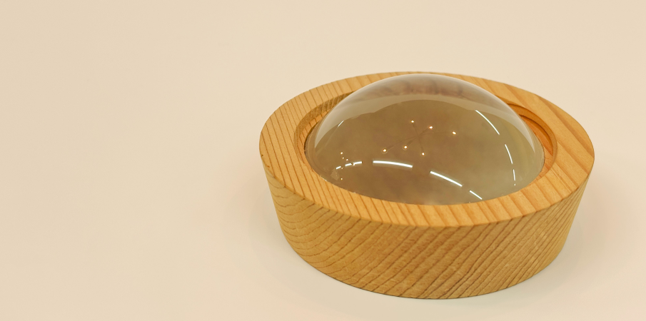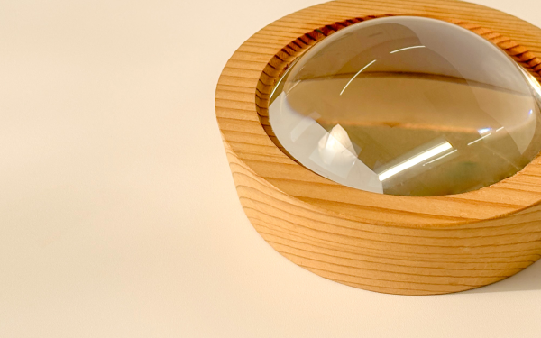 木枠の中心に据えたのは、太陽をイメージしたガラスレンズ。