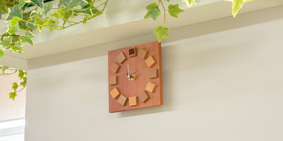 木の素材感を活かした、シンプルなウッドクロック。